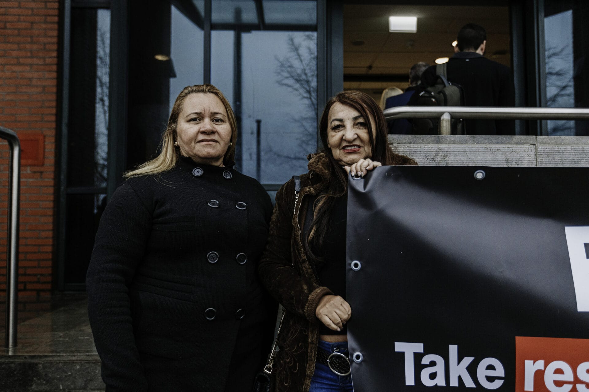 Eight of the claimants stood outside the court before the hearing today. They held banners reading ‘Braskem: Take responsibility, not our homes’ and ‘Braskem sank our dreams’.
